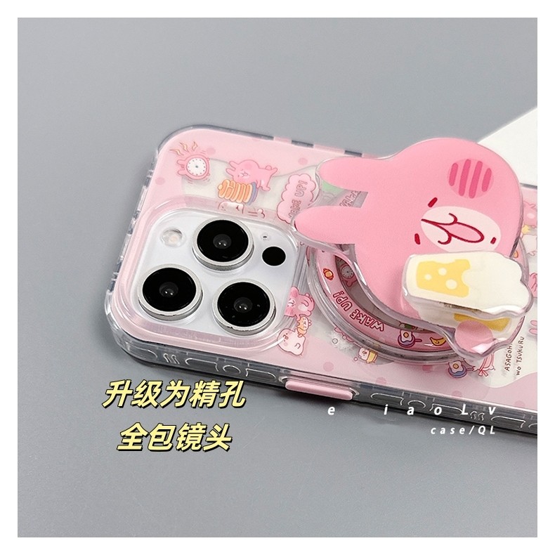 13mini可爱smax硅胶iPhone15 11PRO创意XR软678女SE3 15PRO手机壳14PROMAX 小兔子旋转磁吸支架适用苹果16PRO
