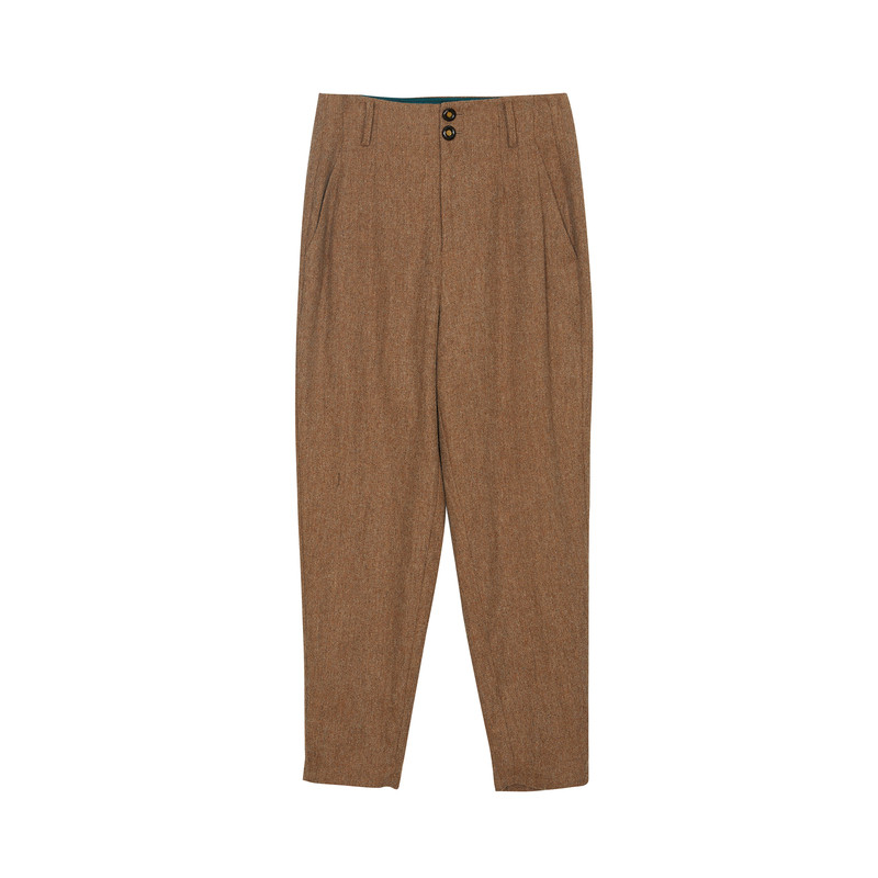 谜底毛呢萝卜裤 新品 复古百搭保暖九分裤 女234MK1529 女士2023冬季