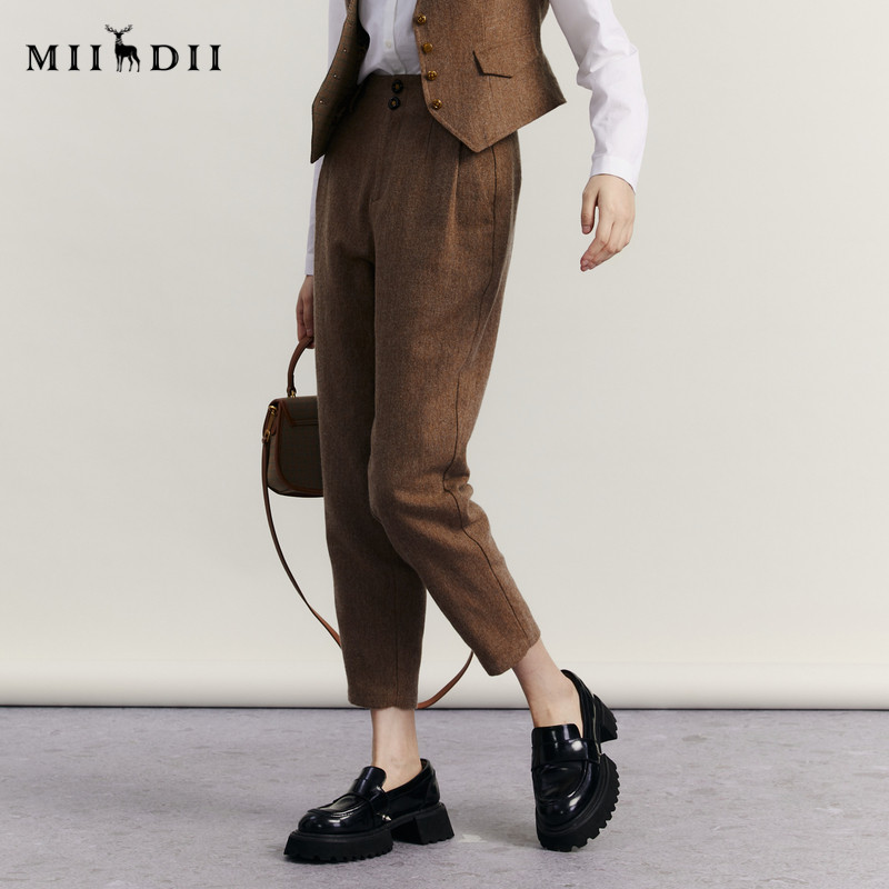谜底毛呢萝卜裤 新品 复古百搭保暖九分裤 女234MK1529 女士2023冬季由