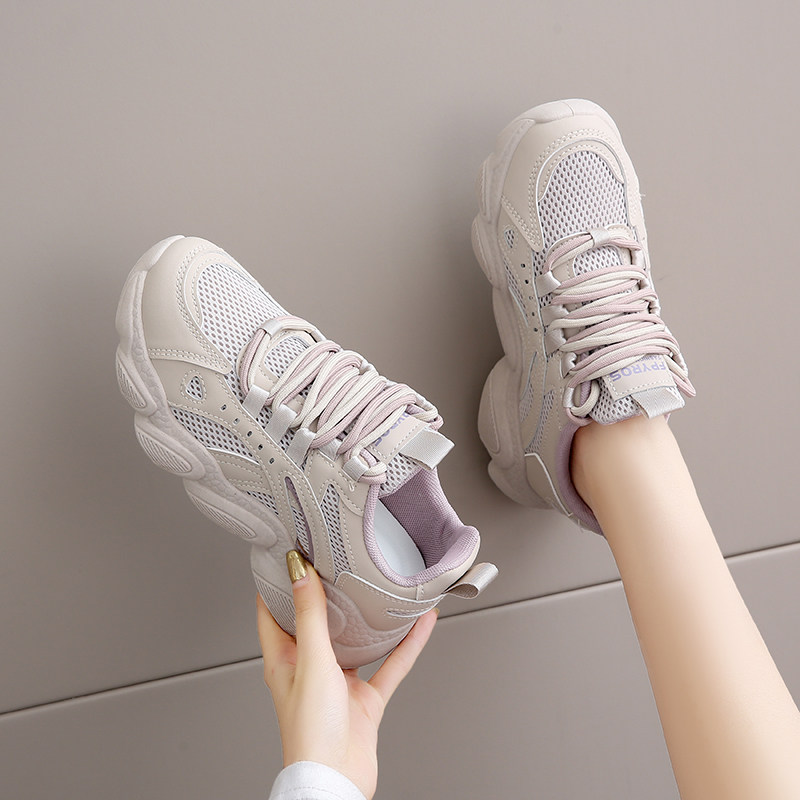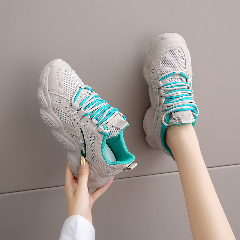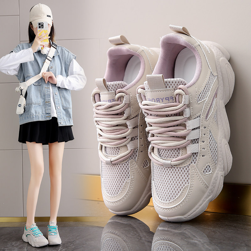 2026春夏新款 银熠 骆驼女鞋 厚底增高银色 休闲网面透气运动老爹鞋