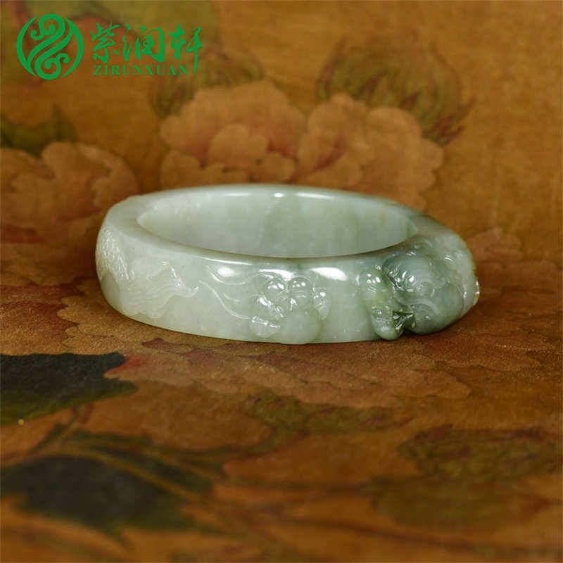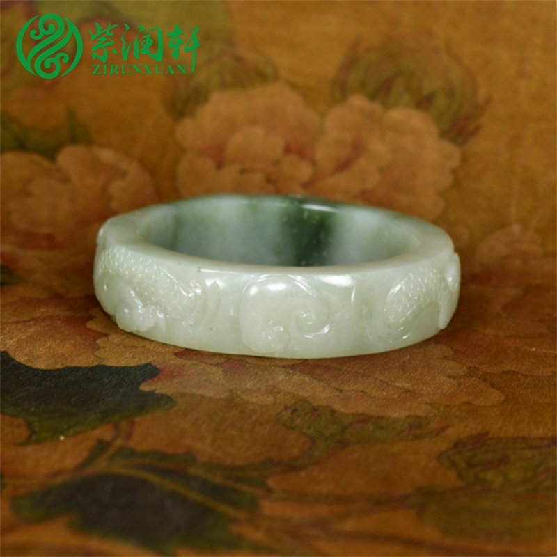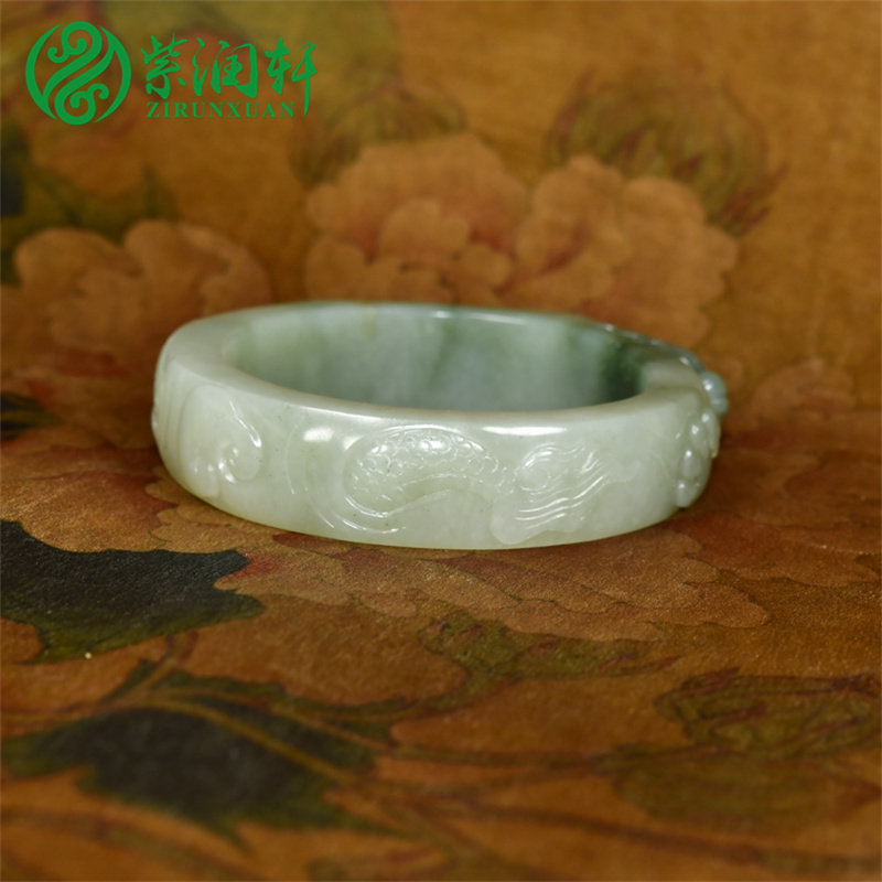 为您提供商品紫润轩新疆和田玉三色翠青籽料手镯56MM洒金皮苏工龙头守护传家级的详细介绍,