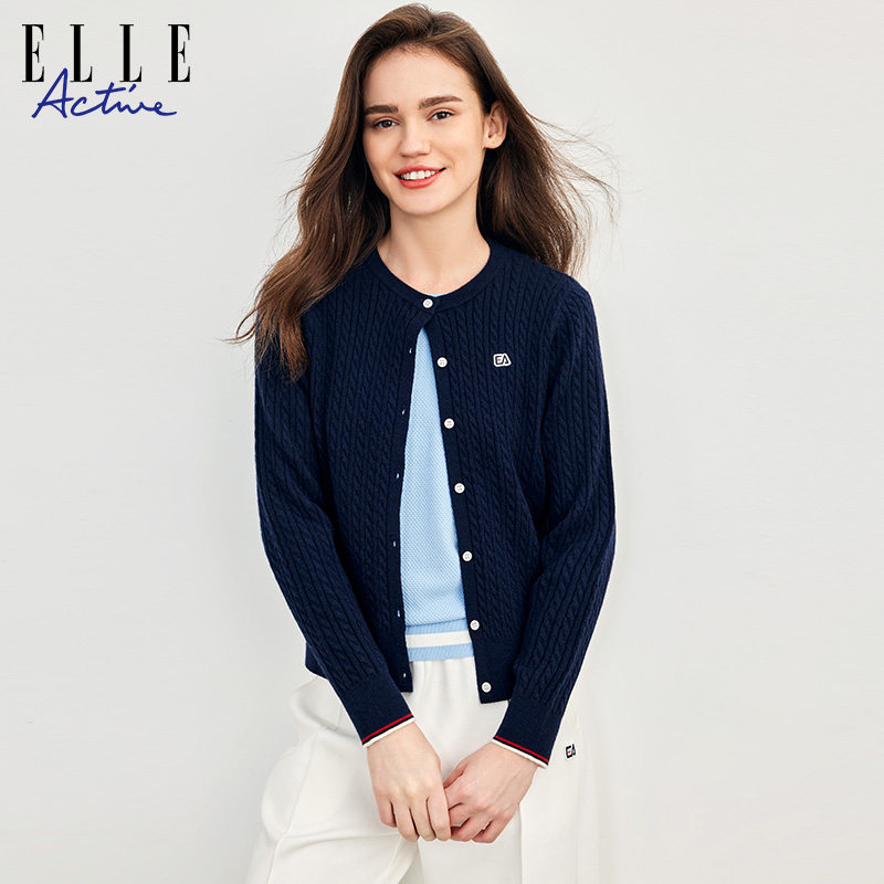 Active法式 含绵羊毛 ELLE 软糯绞花红色毛衣外套 气质针织开衫由