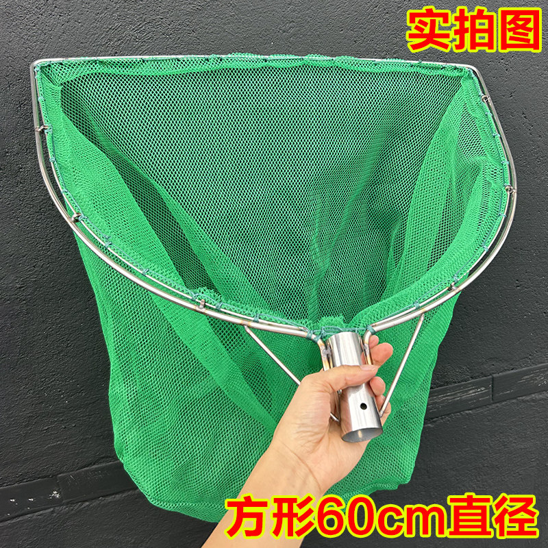可折叠不锈钢实心抄网头大力马网兜捞网抓鱼网头一体抄网圈大物网