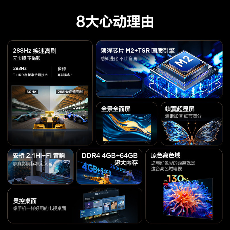 288Hz疾速电视原色高色域 TCL电视 85S11K 85英寸 64GB一级能效