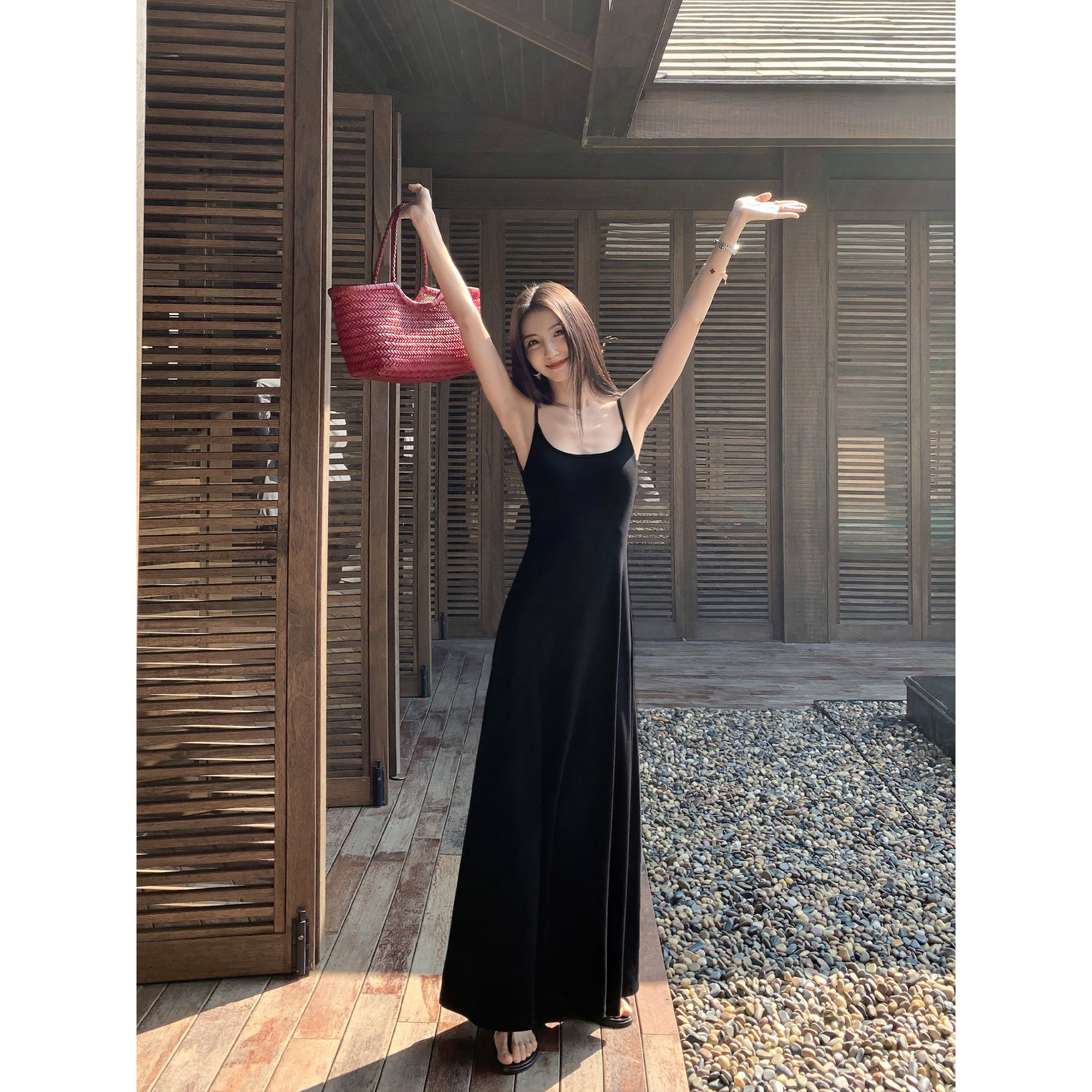 MULVAN 高级重工吊带连衣裙女针织大摆裙气质镂空长裙 超模天菜裙由