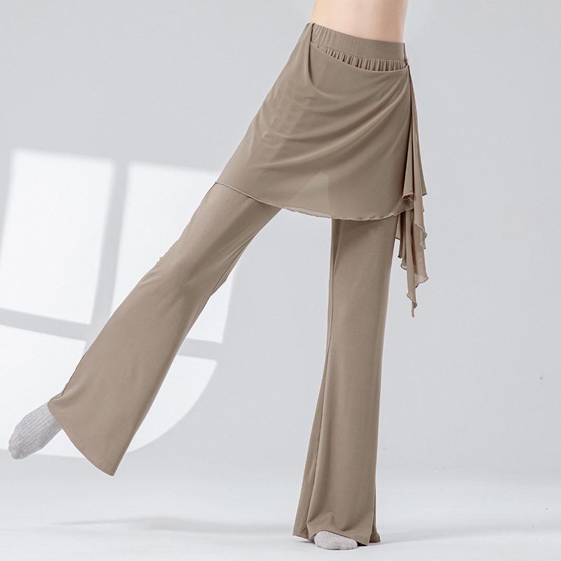现代舞裤 古典舞练功服修身 微喇叭裤 子女高腰屁帘遮臀假两件裙裤