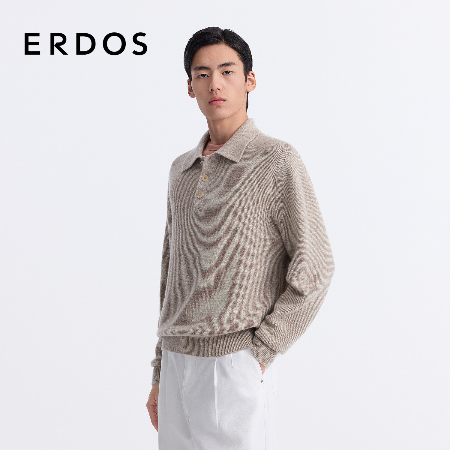 保暖针织衫 ERDOS 商务休闲 翻领翻花工艺厚款 25年新品 男装 羊绒衫由