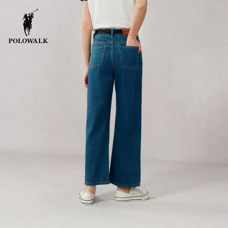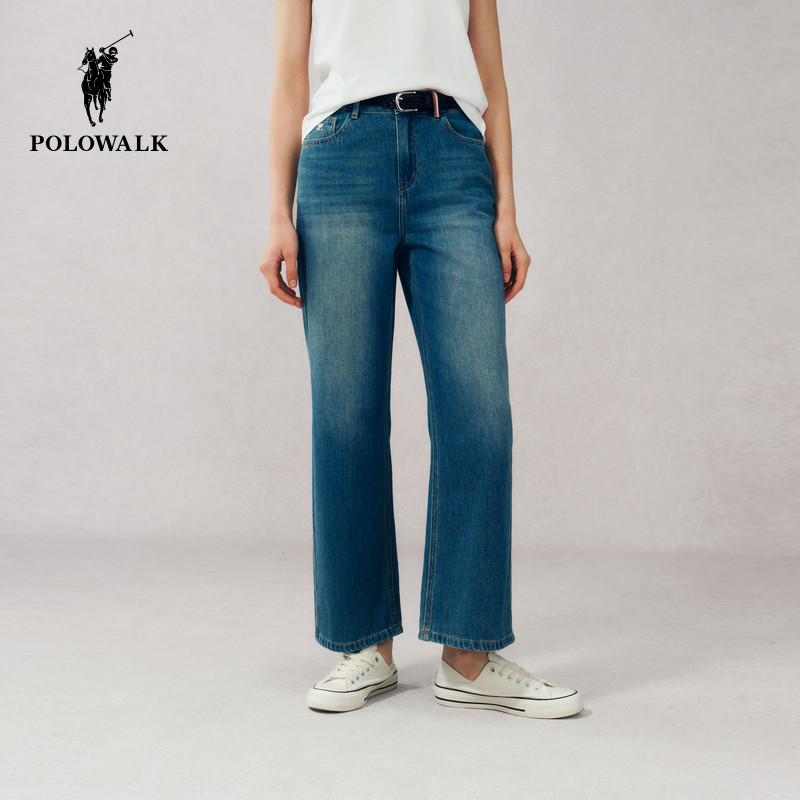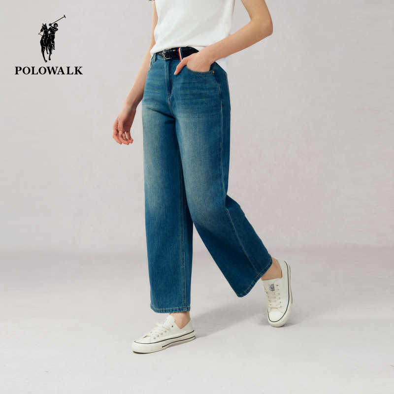 裤 POLOWALK女式 子 简约百搭宽松直筒时尚 复古阔腿裤 牛仔裤 春夏裤