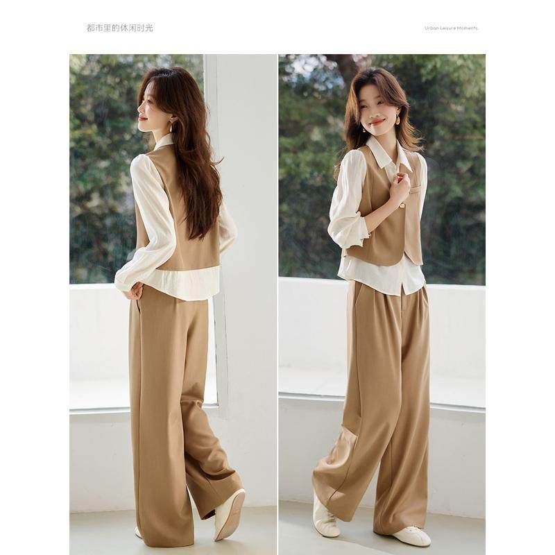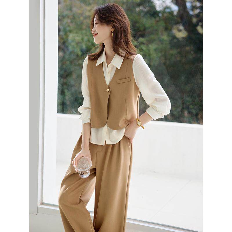 沫晗依美假两件马甲阔腿裤 爆款 高级感套装 通勤穿搭一整套2026新款由