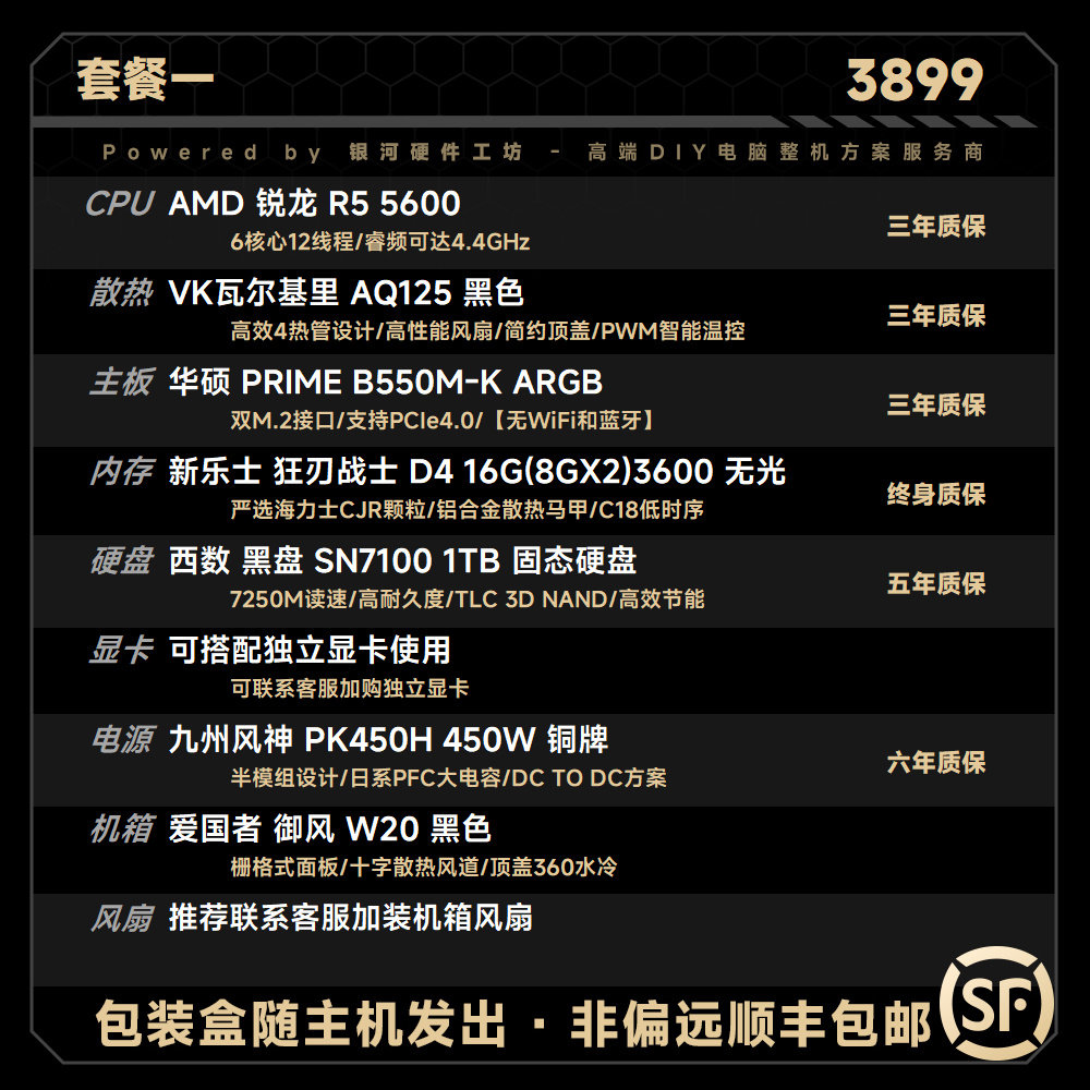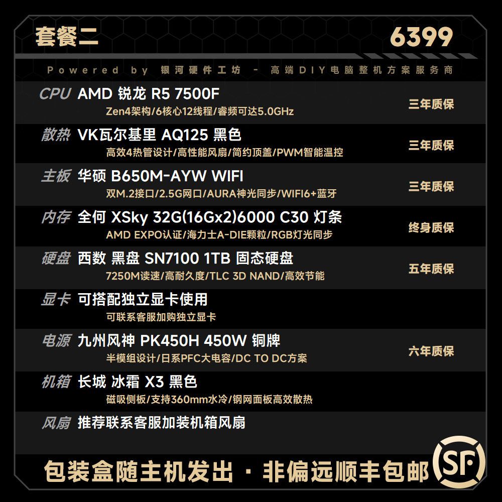 AMD B站51972推荐 9600X无显卡电脑主机 7500F 9500F 5600由