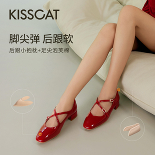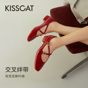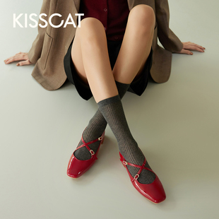 芭蕾单鞋 KISSCAT接吻猫 Melody玛丽珍 舒适法式 复古红色玛丽珍鞋由