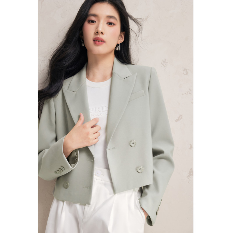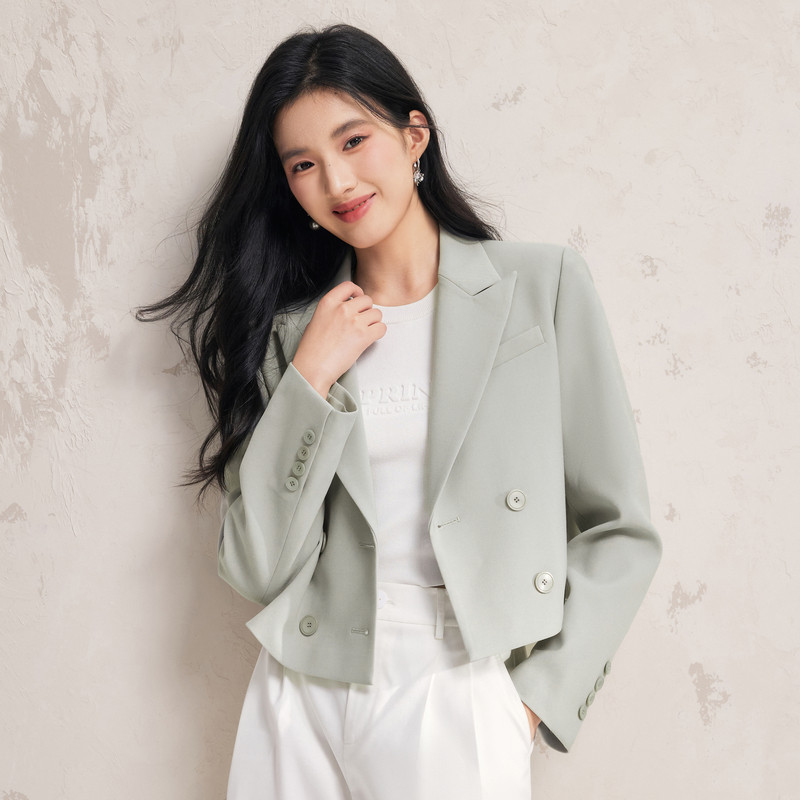 为您提供商品秋水伊人戗驳领短款 女2026春季 新款 小个子双排扣洋气百搭外套 西装的详细介绍,