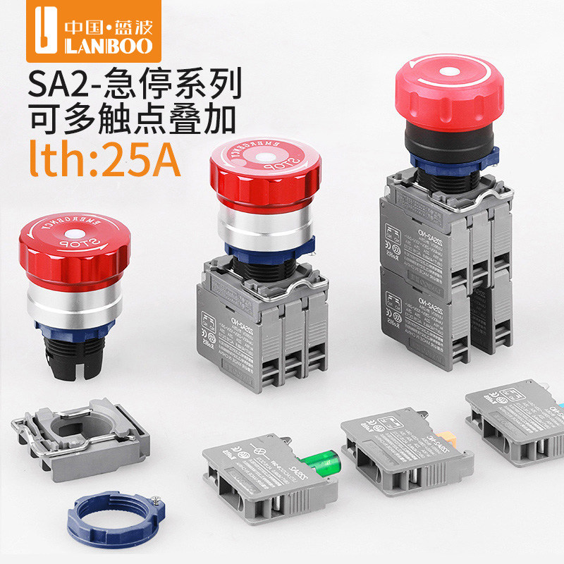 BA31急停旋钮平钮 蓝波22mm按钮开关ZB2控制启动停止自复位XB2由