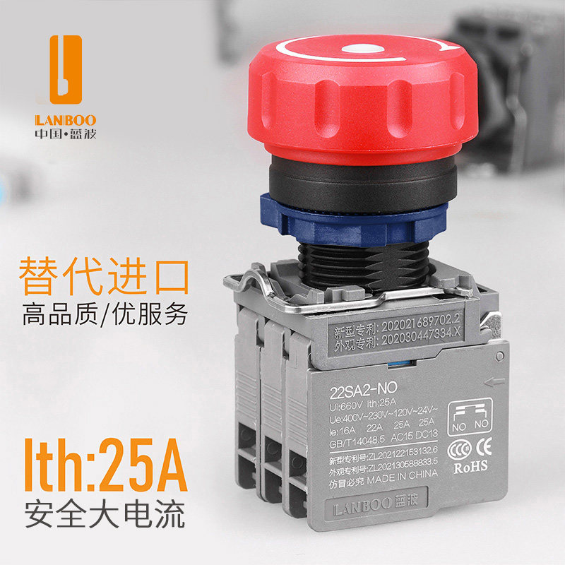 BA31急停旋钮平钮 蓝波22mm按钮开关ZB2控制启动停止自复位XB2