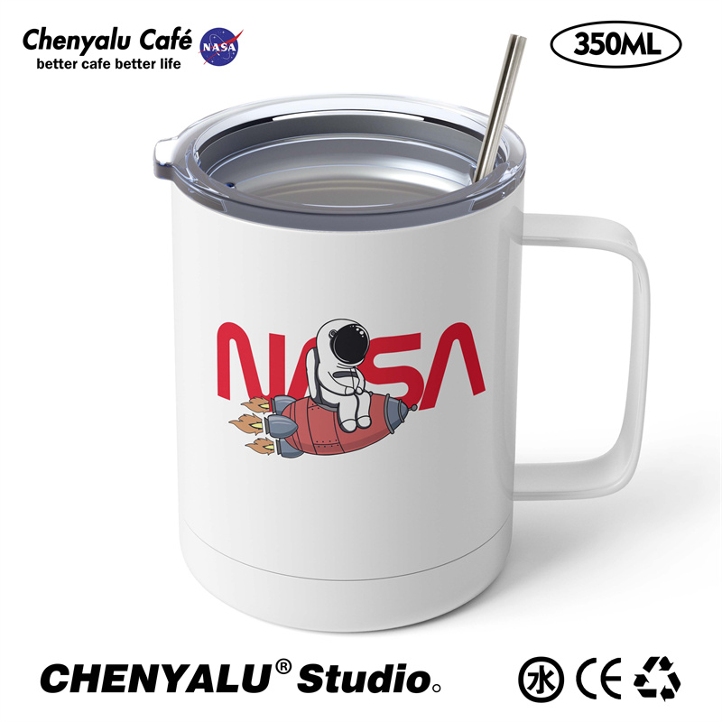 NASA航天局不锈钢水杯潮男金属350ml咖啡随行杯保温杯子吸管便携由