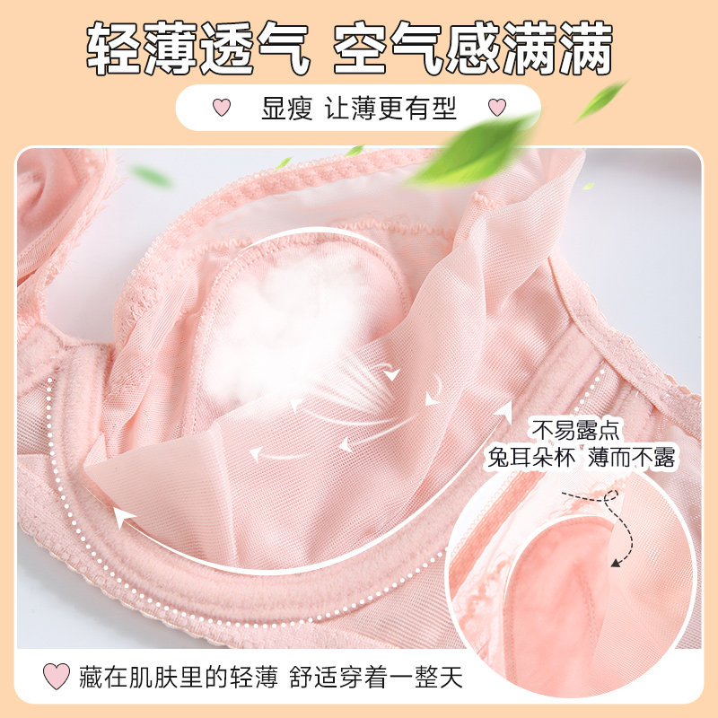 大胸显小胸聚拢收副乳防下垂女士文胸罩 菇娘家兔耳杯内衣女夏薄款