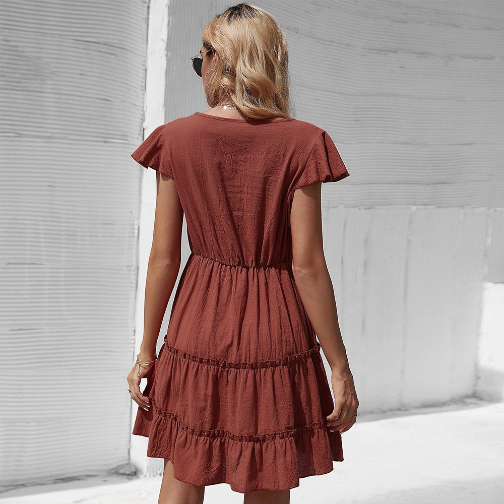 RUISHI芮时 花朵系带宽松度假风荷叶边连衣裙子女夏 云絮柔漾