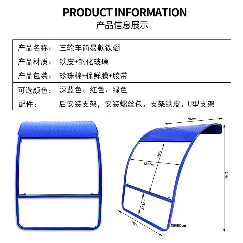 为您提供商品电动三轮车雨棚车篷前车头棚简易遮阳棚可拆新款 防雨篷透明加厚款的详细介绍,