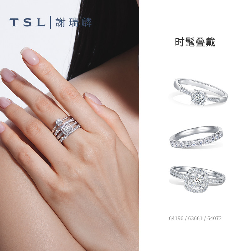 TSL谢瑞麟18k金钻石排戒钻石K白指环轻奢戒指63661由