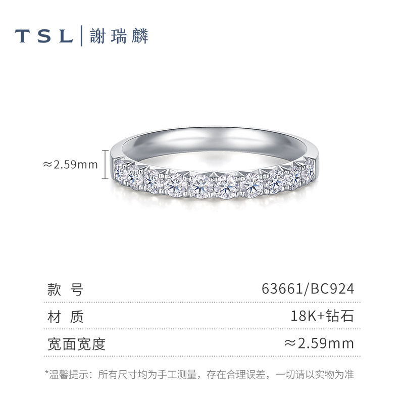 为您提供商品TSL谢瑞麟18k金钻石排戒钻石K白指环轻奢戒指63661的详细介绍,