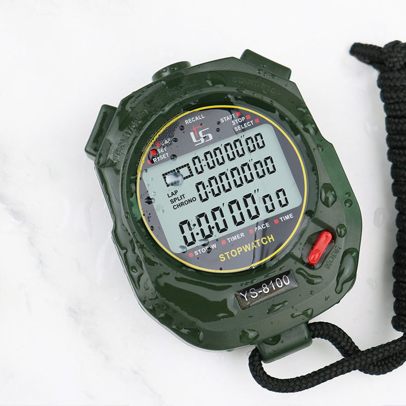 表可关机可静音 弈圣YS8100军绿色电子秒表训练教练田径健身裁判码由