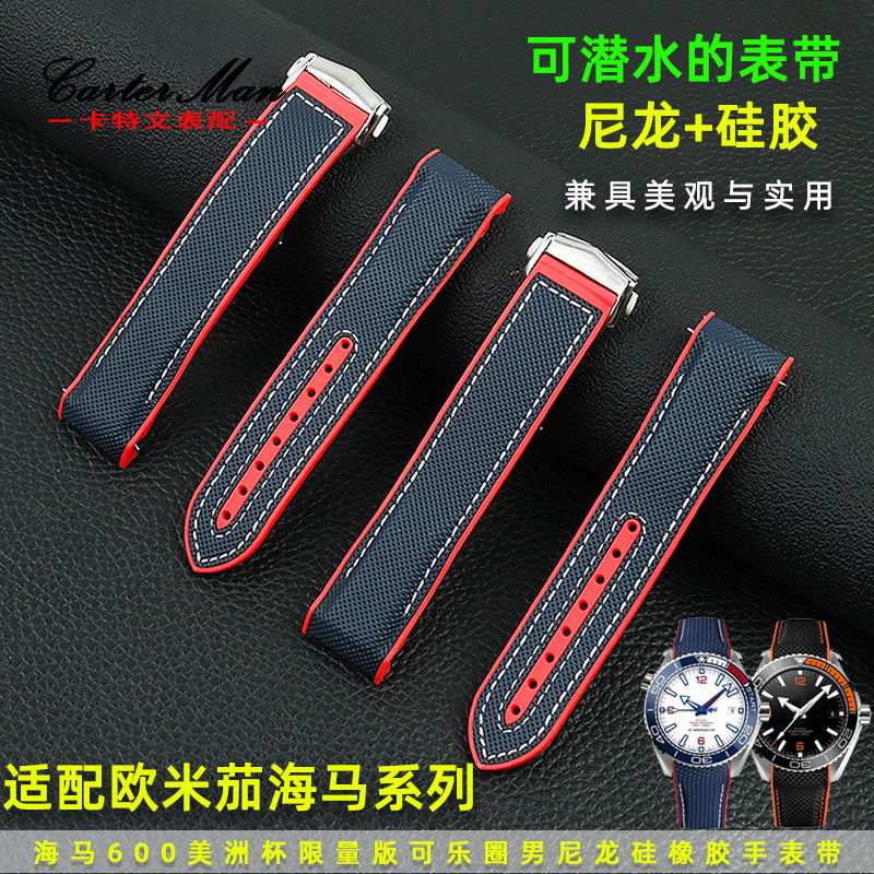 帆布尼龙表带适配欧米茄海马215.32海洋宇宙超霸600美洲杯限量版由