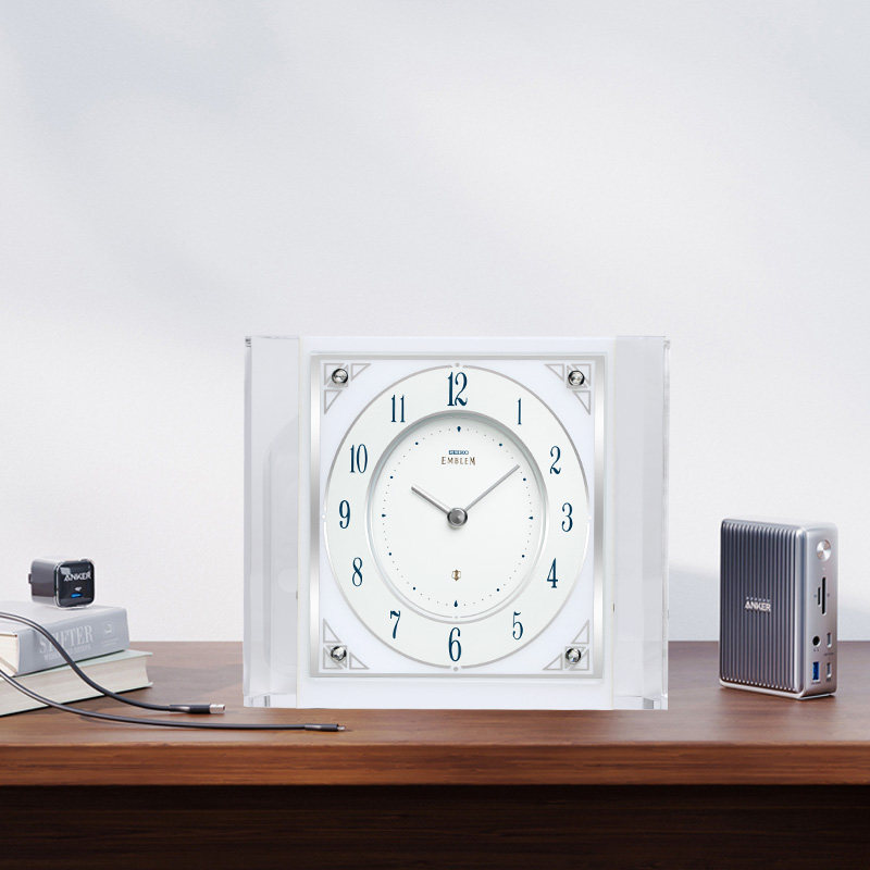 SEIKO日本精工时钟EMBLEM系列大理石卧室办公室书桌轻奢钟表台钟由