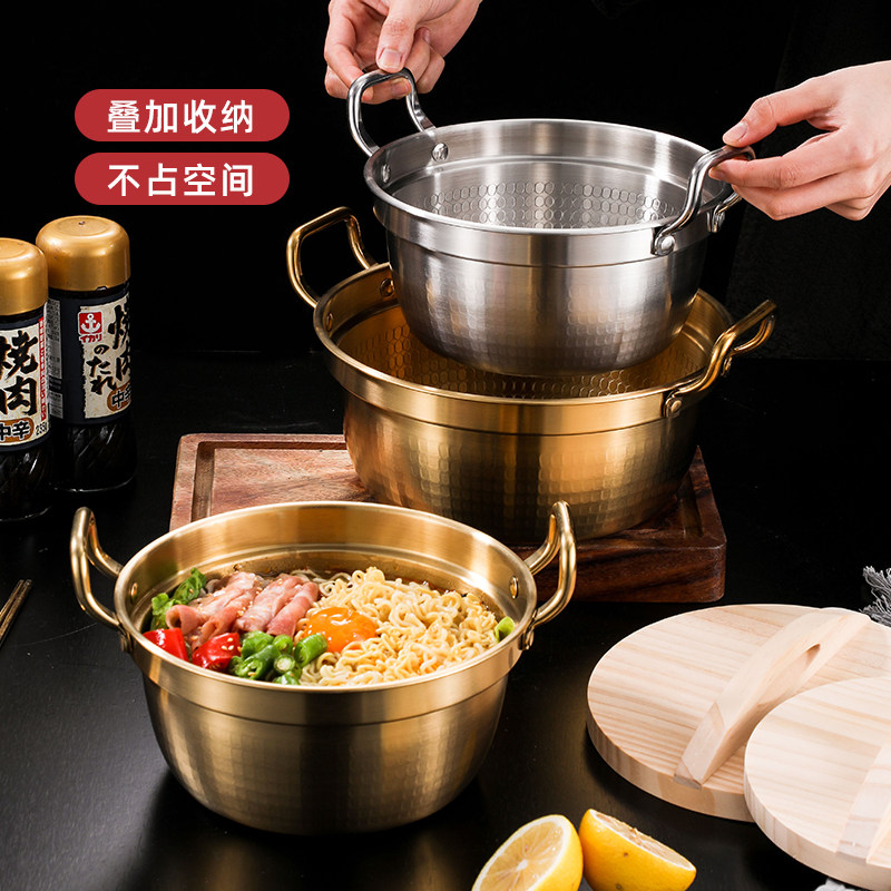 304不锈钢双耳泡面锅煮面汤锅拉面锅小火锅燃气电磁炉专用 日式由