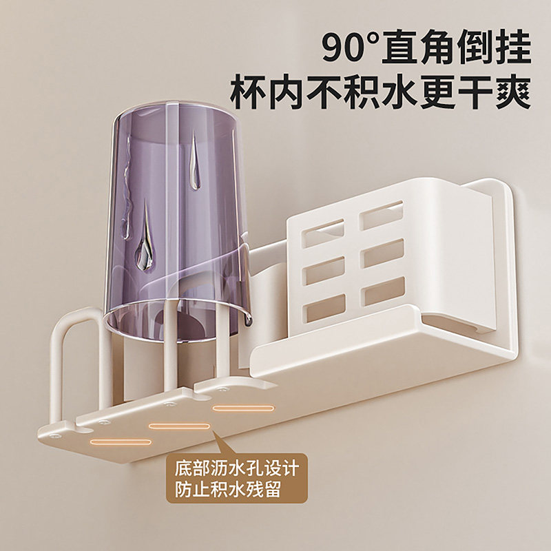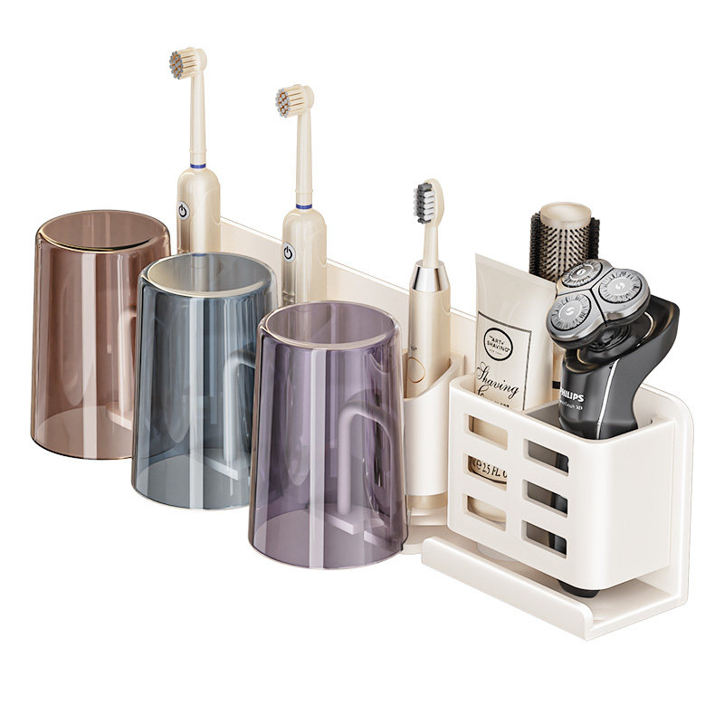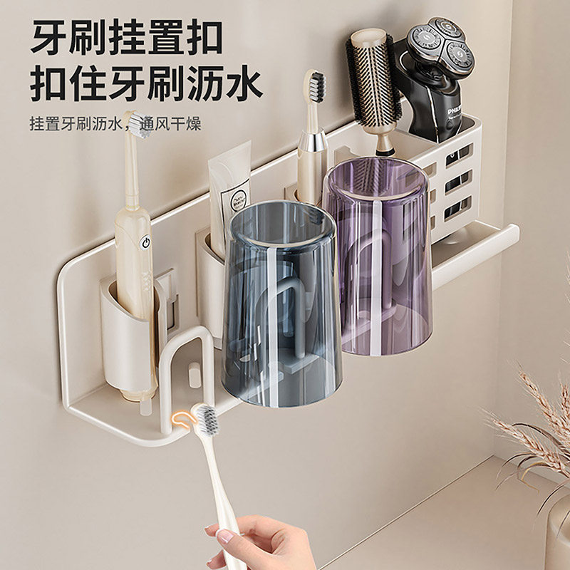 电动牙膏牙刷架子 奶白色牙刷置物架卫生间漱口杯刷牙杯收纳壁挂式
