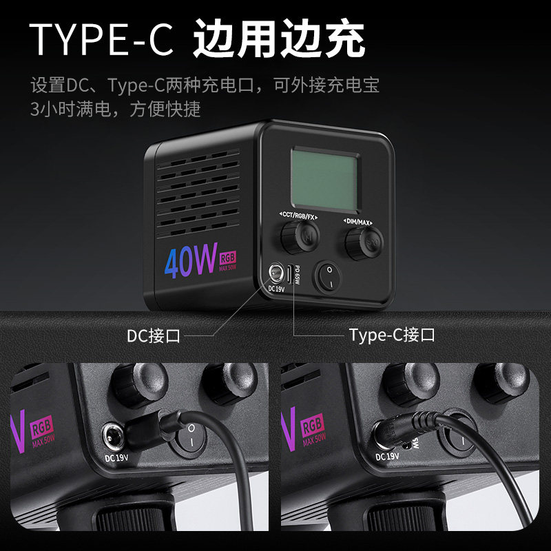RGB掌上COB补光灯内置电池摄影灯拍照户外拍摄柔光LED影视灯人像视频摄影主播直播影室灯 Ulanzi优篮子40W由