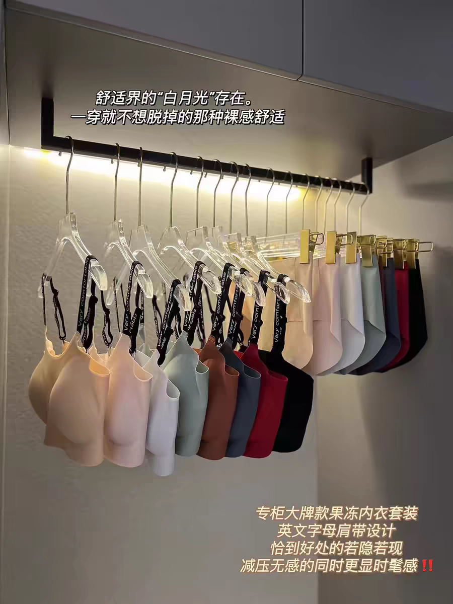 果冻承托力套装 纯色无痕裸感背心式 文胸套装 小胸聚拢固定杯一体式由