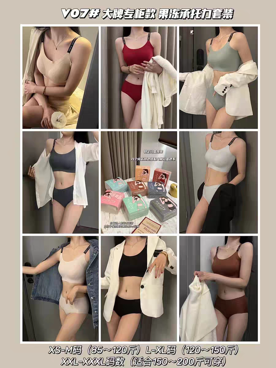 为您提供商品果冻承托力套装 纯色无痕裸感背心式 文胸套装 小胸聚拢固定杯一体式的详细介绍,