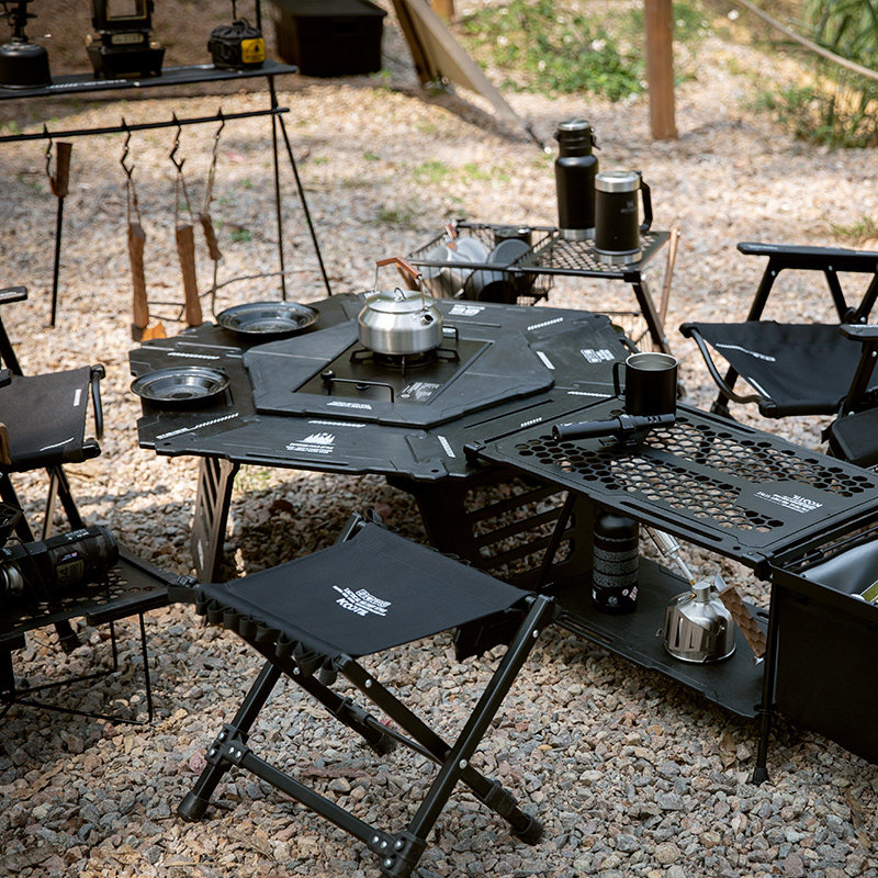 户外露营围炉折叠桌igt桌子多功能组合厨房烧烤桌野营六角战术桌