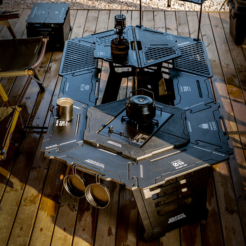 户外露营围炉折叠桌igt桌子多功能组合厨房烧烤桌野营六角战术桌由