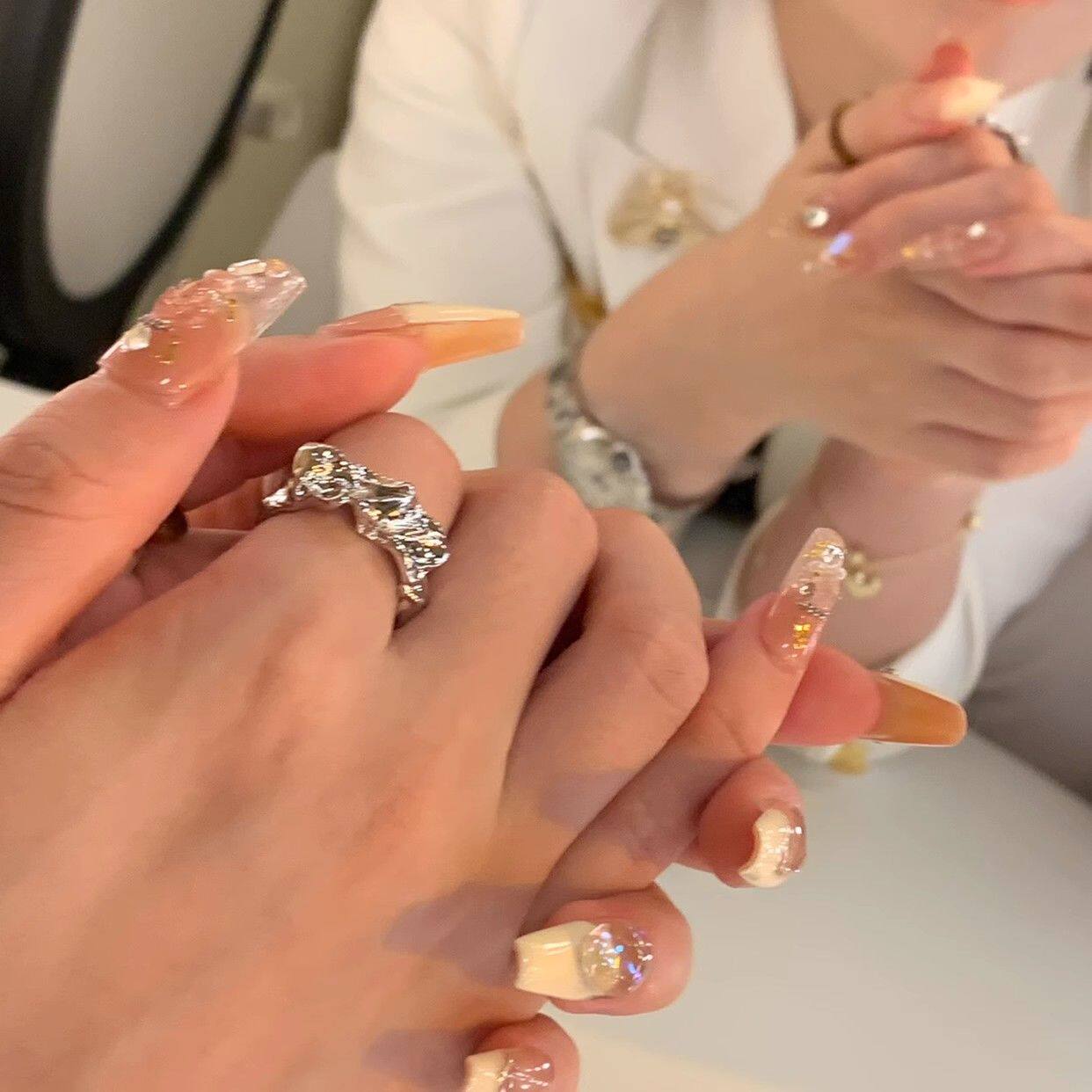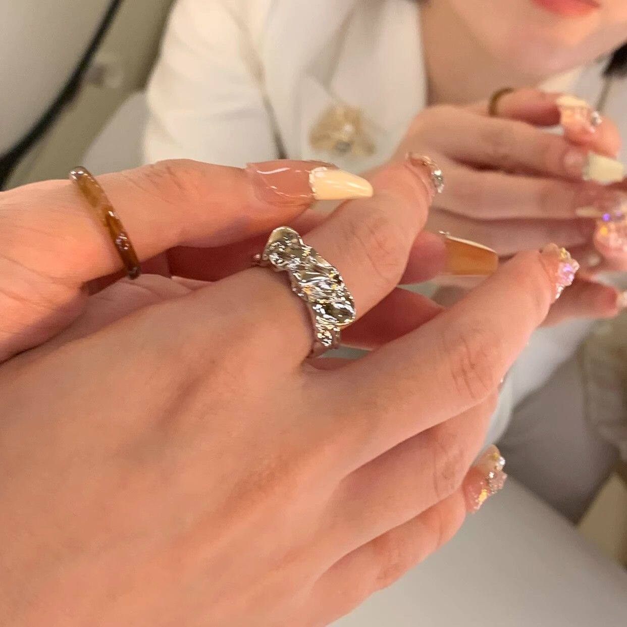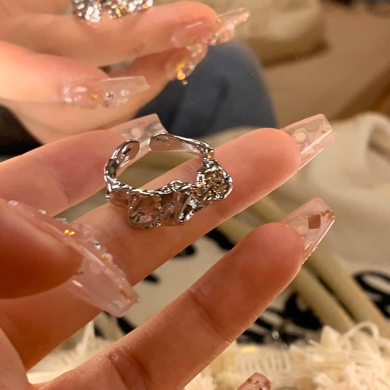 送醋酸素圈 ins开口戒指女轻奢小众设计高级感简约食指戒 褶皱个性由