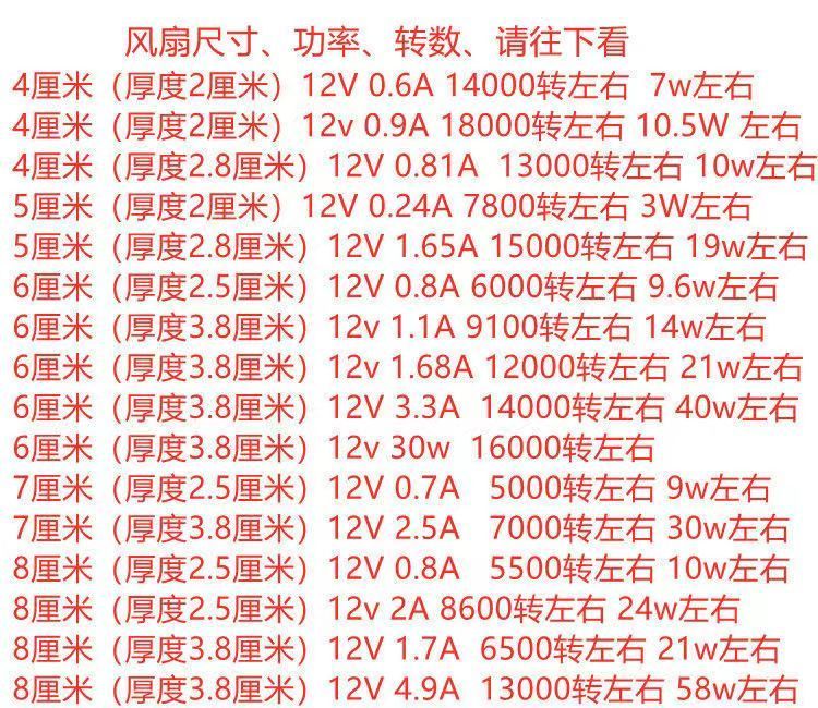 8cm 12V暴力风扇大风量强力改装 9cm12cm 7cm 6cm 散热风扇4cm 5cm由