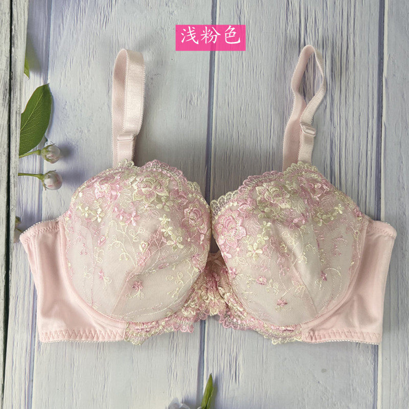 无痕内衣女薄款 新光面上托微聚拢全罩杯大胸显小文胸 小青提 遐