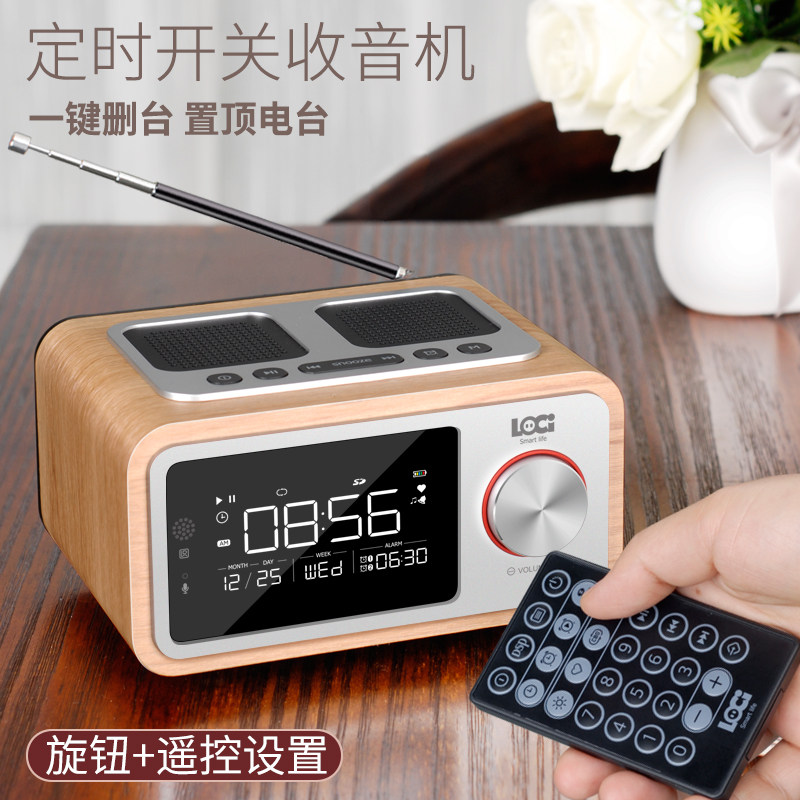H3蓝牙音箱定时开关机自动音乐播放器木质U盘音响闹钟收音机 朗技