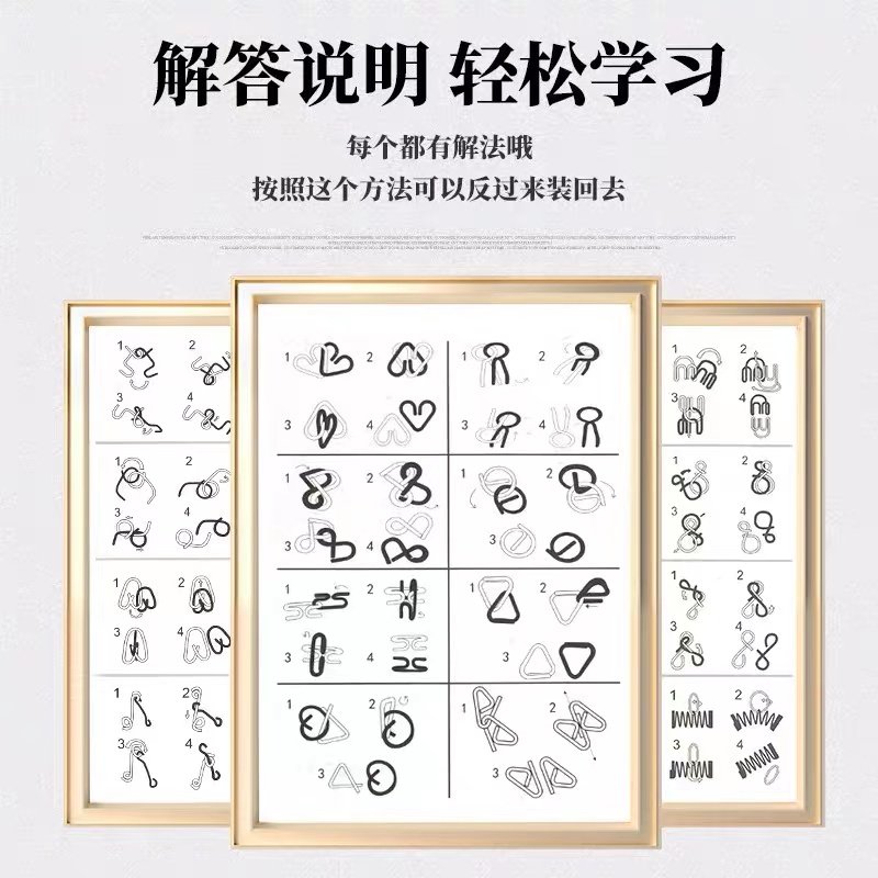 益智九连环解锁玩具24件套解锁扣解环孔明锁全套马蹄锁益智lx