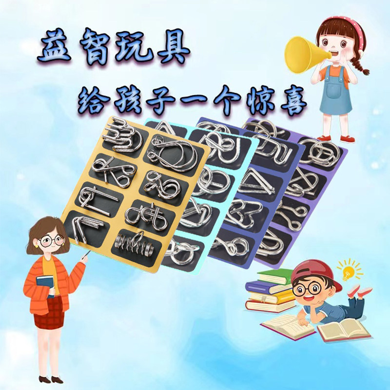 九连环智力解扣记忆连环扣24件套小学生思维训练解环解锁益智玩具由