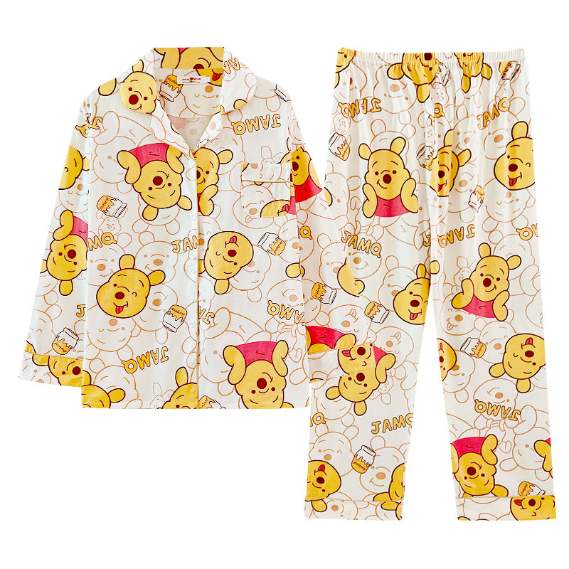 迪士尼情侣睡衣春秋款 套装 男女生可爱维尼小熊家居服夏季 纯棉长袖
