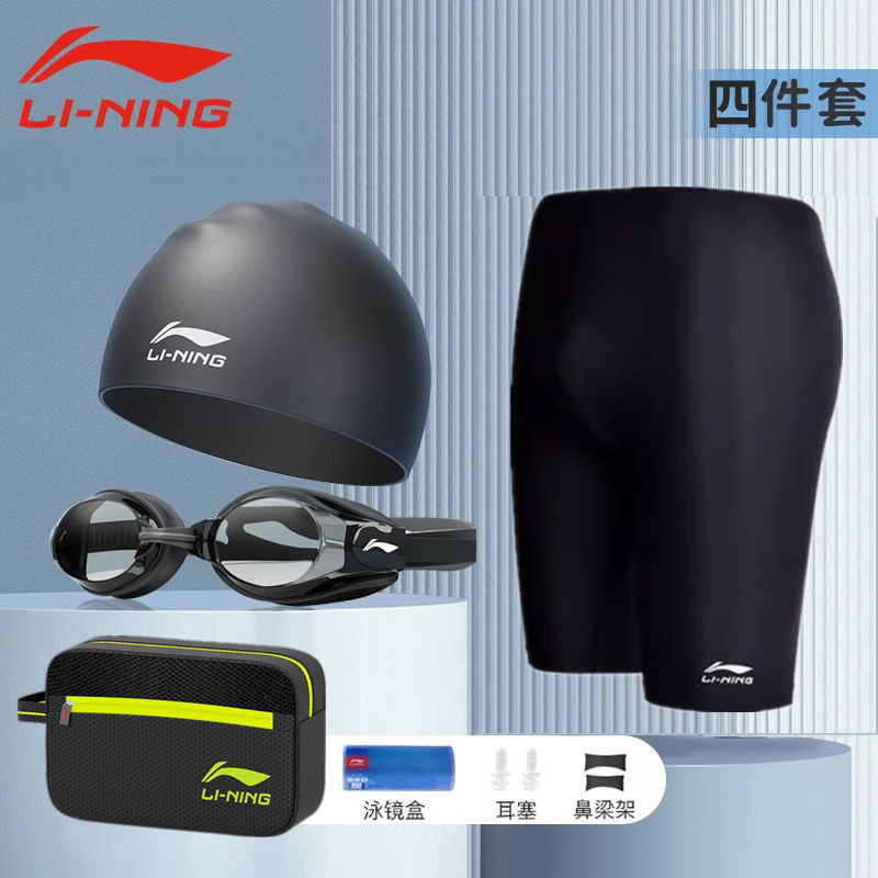 备男全套防尴尬泳裤 李宁泳裤 男士 专业游泳装 温泉 泳帽泳镜三件套装由