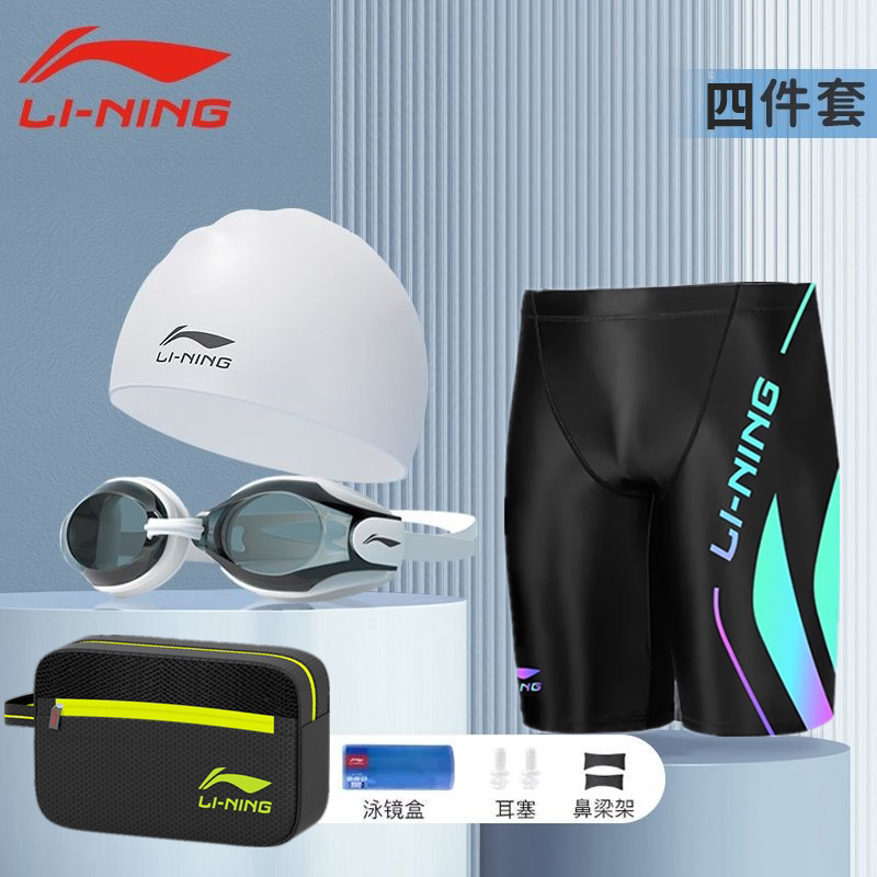 李宁游泳裤 防尴尬温泉沙滩裤 成人泳衣泳帽泳镜三件套2026新款 男士