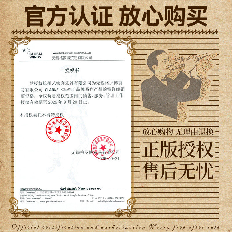 Clarke卡祖笛专业演奏级新型笛子卡祖笛子旗舰店口笛金属乐器高级