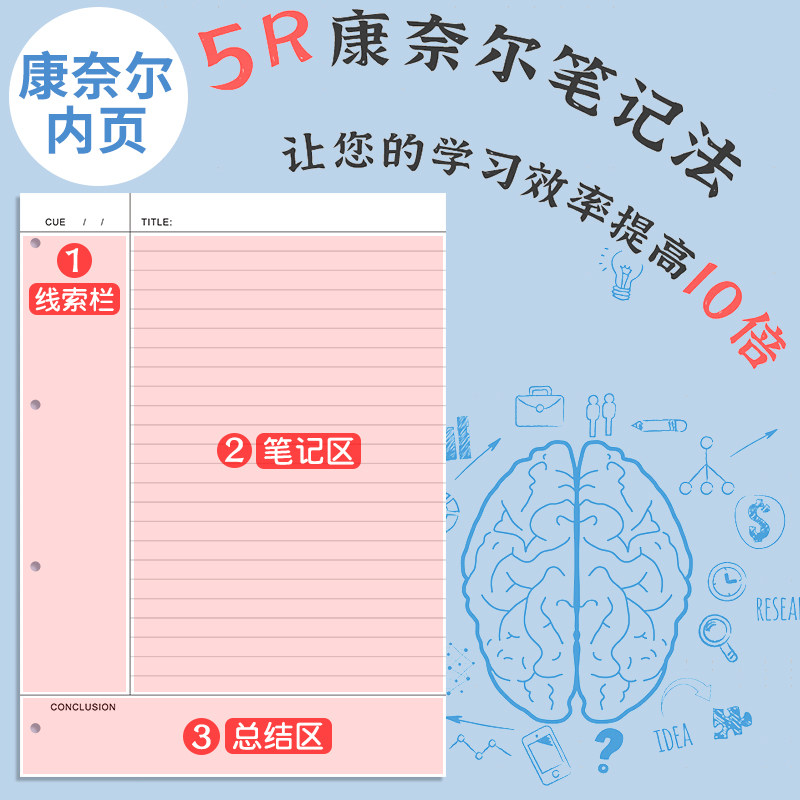 为您提供商品b5康奈尔笔记活页本5r记忆法记事本横线活页纸大学生考研专用读书阅读工作本子活页夹可拆卸错题本定制印logo的详细介绍,