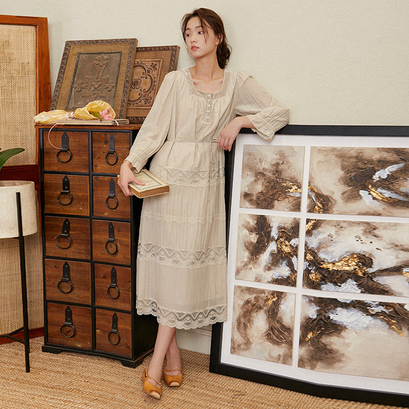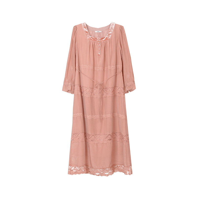 TALASA商场同款 蕾丝拼接设计宽松显瘦长裙 丝棉连衣裙2023年秋新款