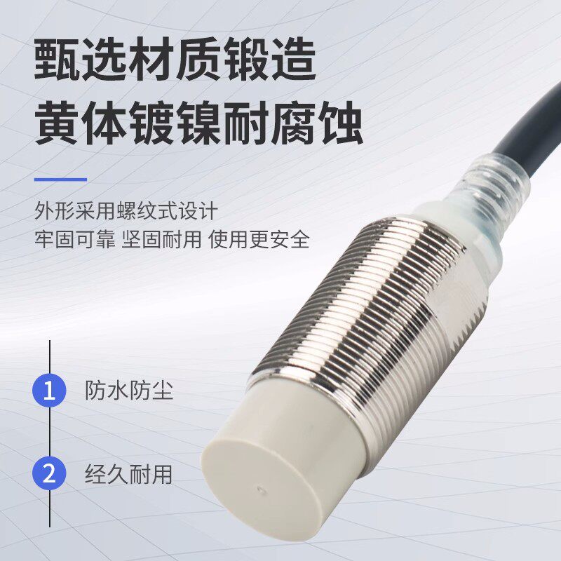 沪工接近开关LJ12A3 BX金属传感器m12电感式 NPN二三线常开24V