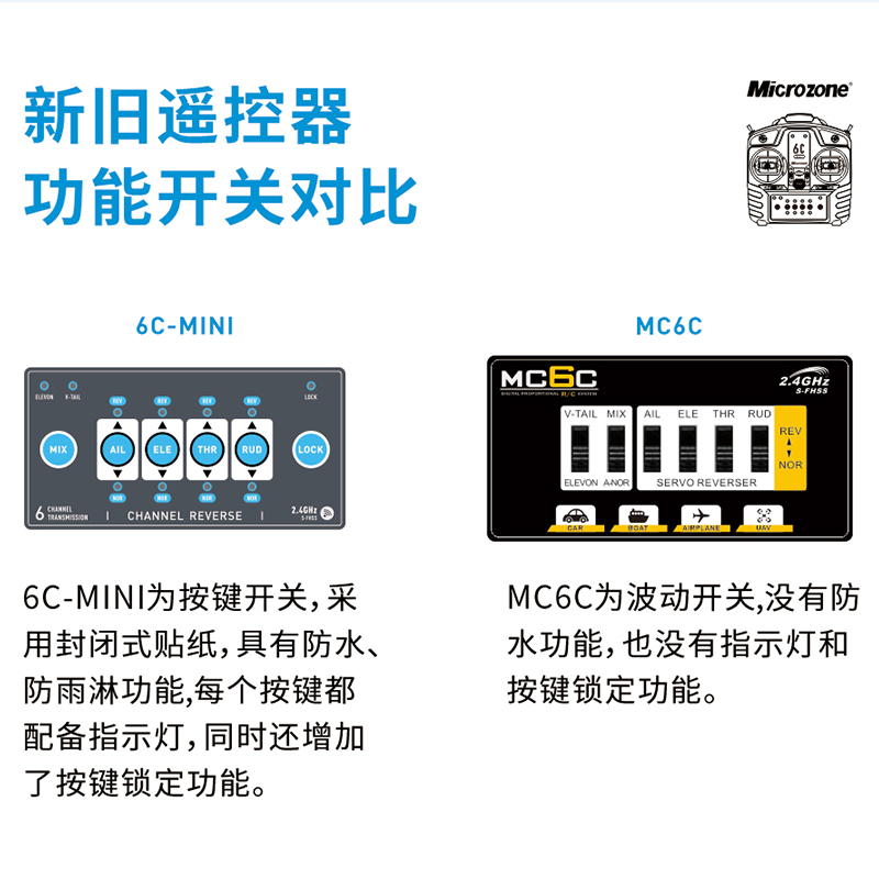 mini航模穿越机模拟遥控器无人接收机6通2.4g固定翼车船 迈克mc6c