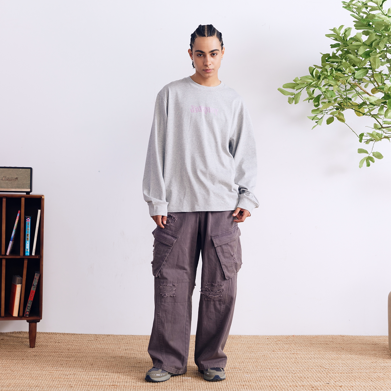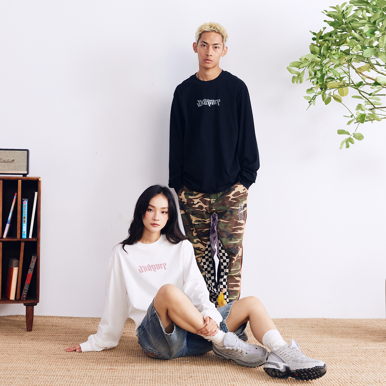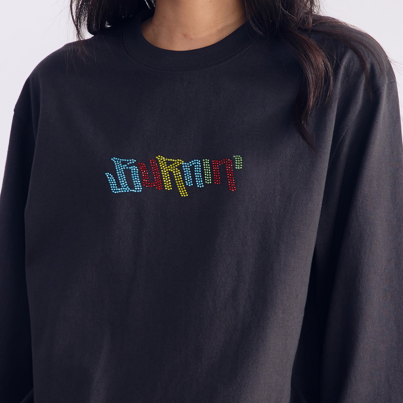 宽松圆领长袖 BURNIN 横排LOGO贴钻长袖 T恤男秋季 T恤打底衫
