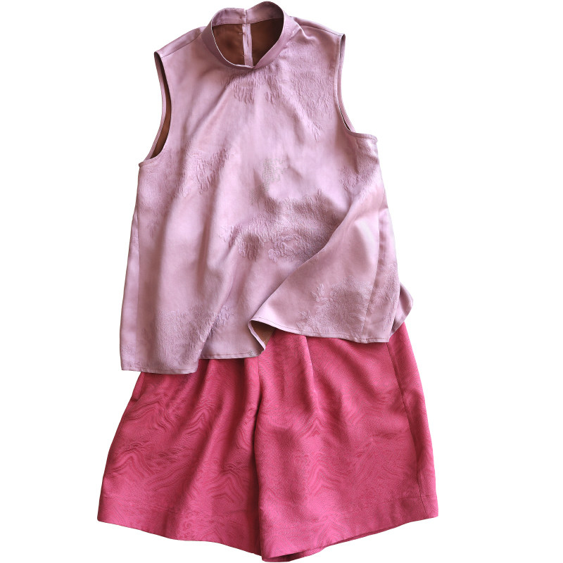 云澍原创香云纱新中式 吊带短裤 两件套装 女夏国风文艺休闲上衣 无袖由